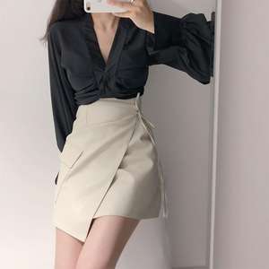 women's leather knee length girls short maxi chiffon skirts custom logo dress mini pagoda sleeve skirts