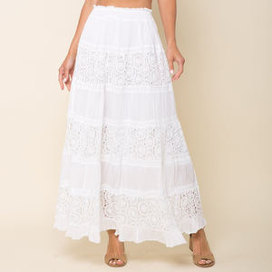 Women's Custom Fashion Summer 100% Cotton Long White Embroidery Maxi Skirt Womens Skirts