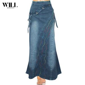 women's vintage literary style stitched denim fishtail denim skirt