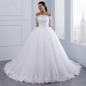 Wedding Clothing White Wedding Dress Ball Gown Elegant Embroidered Flower Big Lace Train Long Sleeve Wedding Dress Bridal Gown
