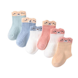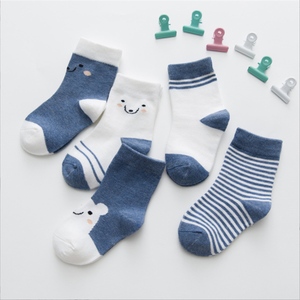 Wholesale autumn and winter cartoon cute bear striped cotton baby socks five pairs per pack 1-9 years