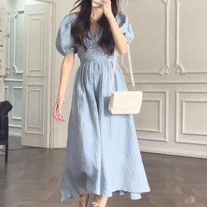 Wholesale 2022 Summer New French Hepburn Style Niche Design Long Dress High-end First Love Tea Break Bubble Sleeve Dress