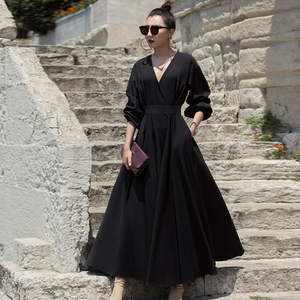 Wholesale 2022 Spring and Autumn New Dress Sexy Slim European Station Banquet Temperament Hepburn Maxi Dress Casual Dress