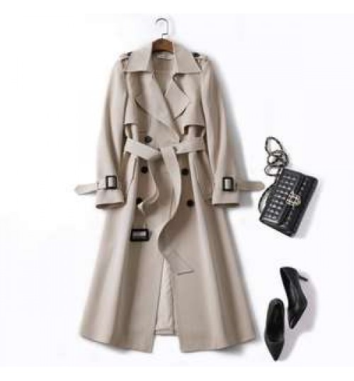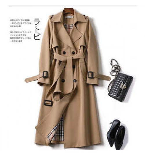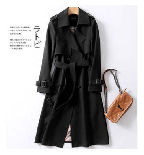 leather coats large woman Korean mid-length trench coat for women 2020 popular British over-the-knee overcoat for spring autumn