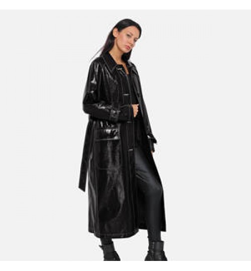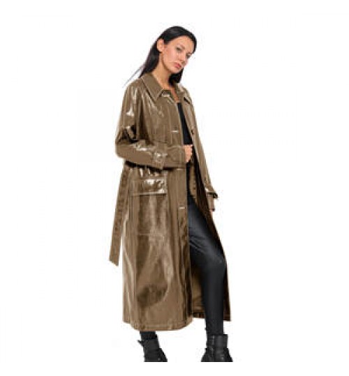 Advantage | *slim with belt *PU shiny high quality *long trench coat |