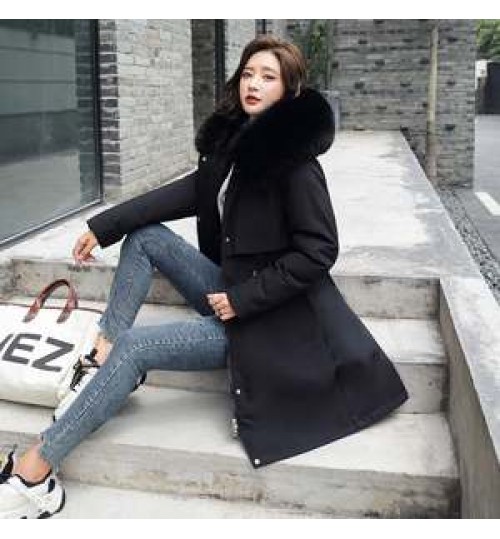 Wholesale new women's warm hooded cotton-padded coat women's slim long down jacket winter jacket women's coat