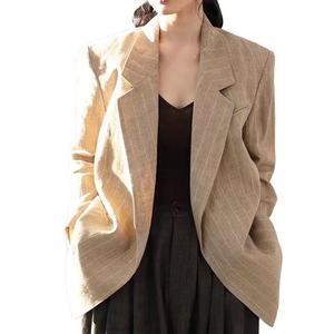 2021 Fashion Office Wear Double Breasted Blazer Vintage Long Sleeve Pockets Female Outerwear Chic Tops Women's Coats