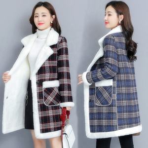 2021 autumn and winter Plush thickened women's Plaid long jacket coat cotton coat inner warm lamb cashmere cardigan