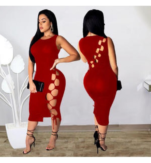 Women Dress Dresses Women Sexy Dress Sleeveless Cut Out See-through Dresses Bodycon Bandage Long Dresses Women Lady Elegant