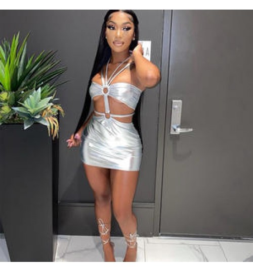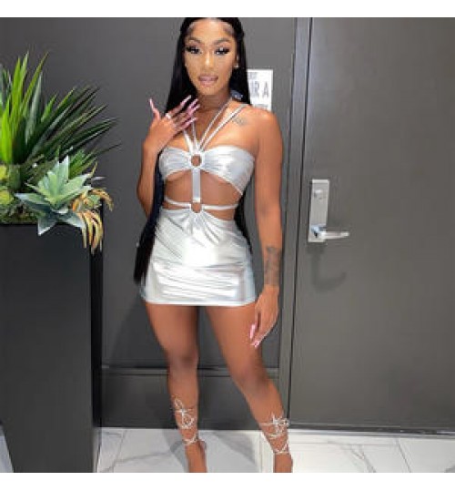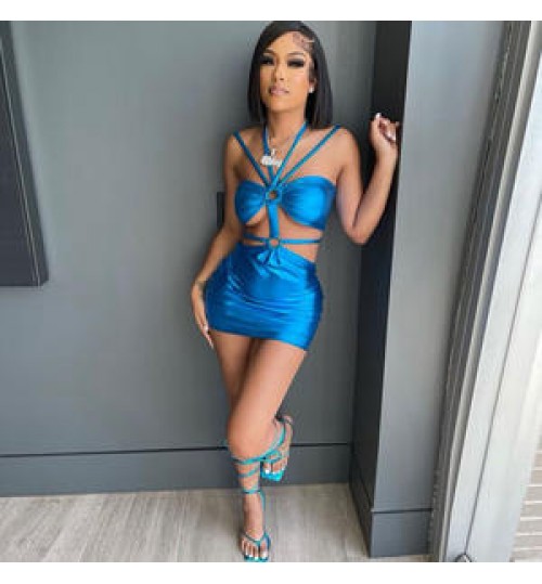 Dress C0787 New Wrap Chest Short Skirt Lace Up Fashion Sexy Casual Sleeveless Maxi Dress