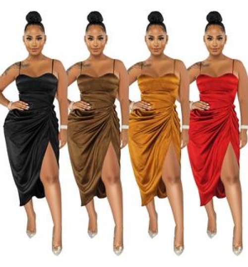 2022 Hot Style Lady Sexy Sleeveless Spaghetti Strap Dresses Women Elegant High Split Bodycon Evening Party Night Club Dress