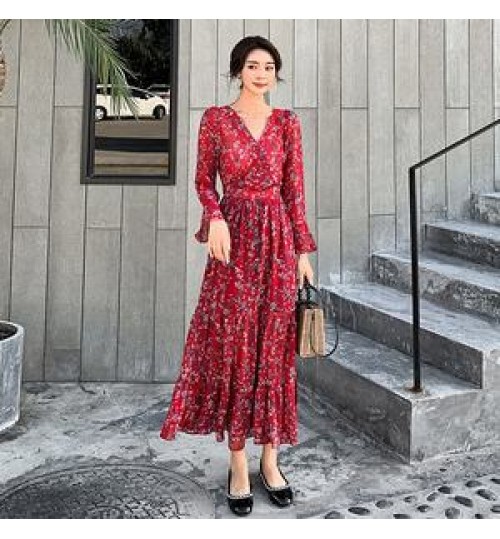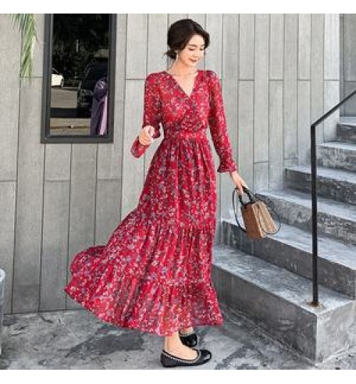 Factory wholesale Fashion Custom Lady Chiffon Ruffle Maxi Dress OEM/ODM Women Elegant Casual Dresses