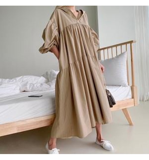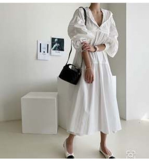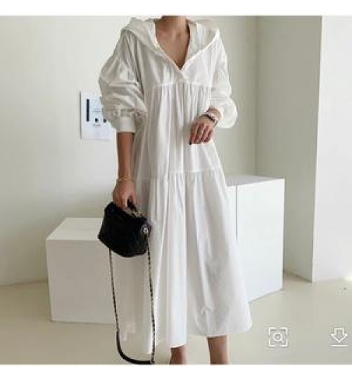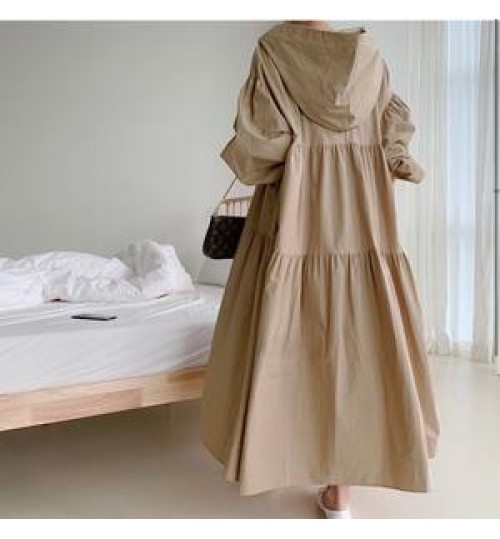 Boutique Wholesale Korean Style Fashion Solid Color Cotton Wild Long Sleeve Hooded Spring New 2021 Women's Dress