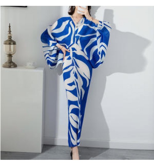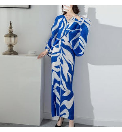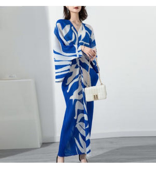 2022 long skirt dolman sleeve pleated print dress women elegant summer casual dresses