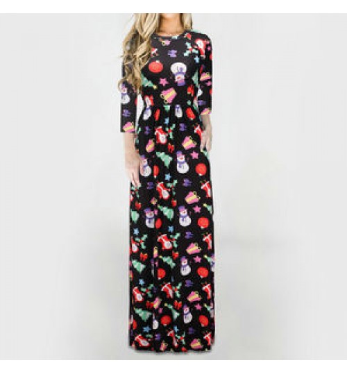 Ecoparty Spring Autumn Women Dress Female Fashion Long Sleeve Floral Print Long Maxi Dress Ladies Casual Ankle-Length Vestido