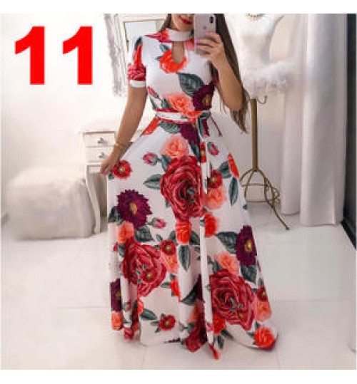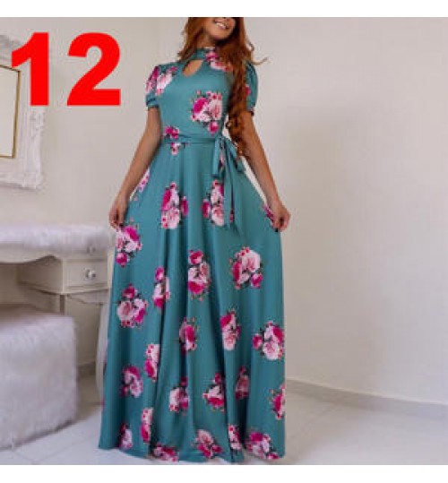 Ecoparty Summer High Waist Women Casual Dress Long Floral Casual Dress Ladies O Neck Holiday Party Maxi Dress Plus Size Sundress