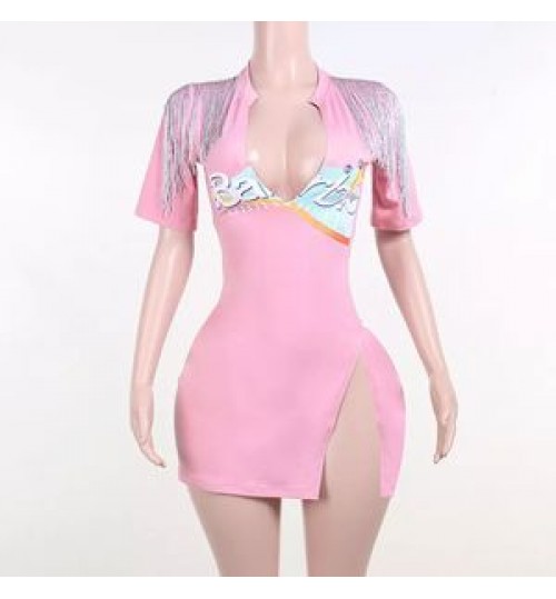 2022 Casual Fashion Dress Solid Color Plus Size Short Sleeve Girls' Tassel Short Dresses Summer Spring Woman Clothing For Women