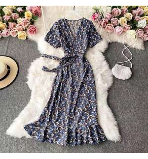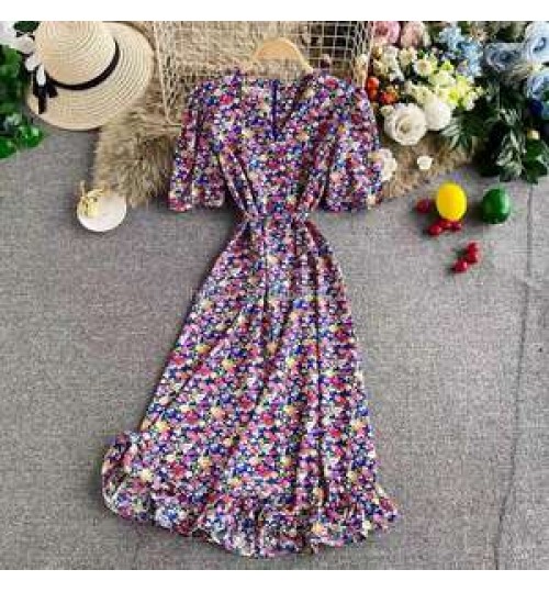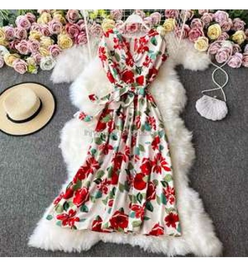 • Large size women's dress summer new retro chiffon printed shirt waist loose Dress For Female Fashion Clothes