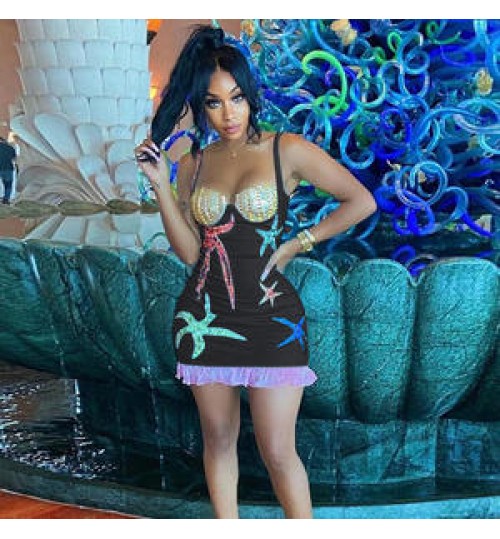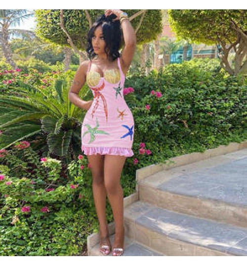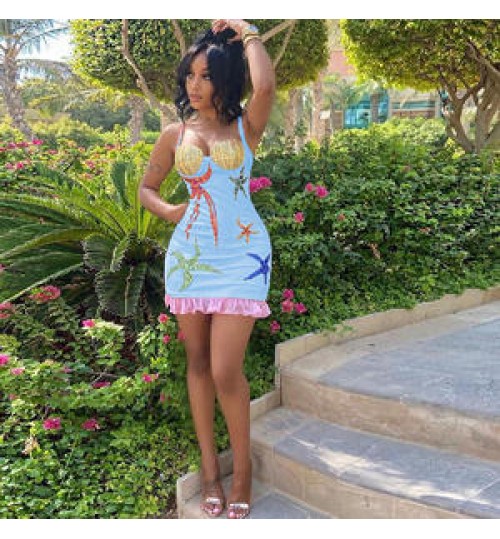 FS8568D 2022 Summer Women's fashion sexy backless print slim dress