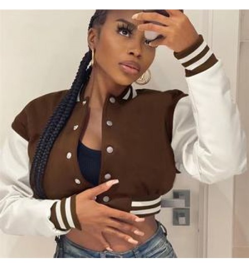 2022 Spring Trending Clothes Letterman Cropped Jacket Women Long Sleeves Varsity Woman Letterman For Ladies Coats Clothes