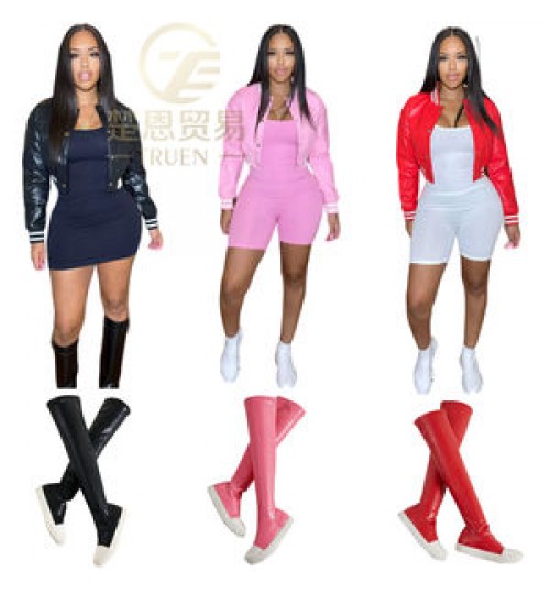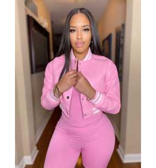 • Women fall winter fleece coat blank long sleeve button down bomber letterman Baseball crop varsity PU leather women's jackets