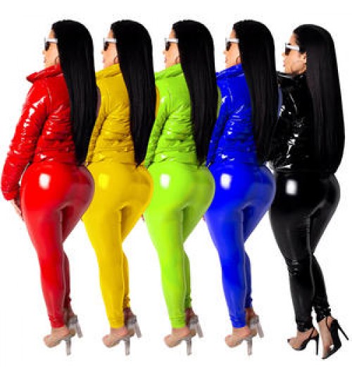 CC18J Glossy Pu Leather Sexy Ladies Jackets Down Coat Women'S Outdoor Jackets Plus Size Women'S Puffer Winter Jackets Set