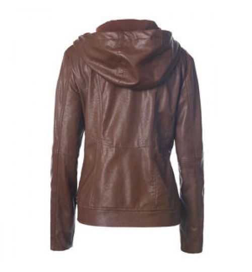 Lapel zipper leather jacket spring and autumn fashion vintage design women's jacket coat shacket