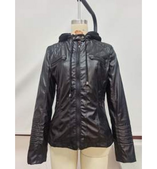Fashion Winter Faux Leather Jacket Women's Basic Jackets Hooded Black Slim Motorcycle Jacket Women Coats Female XS-7XL