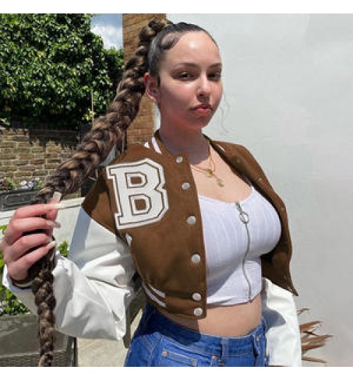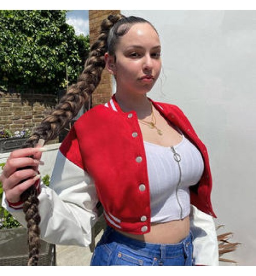 • 2022 Summer New Women's Clothing Single-Breasted Slim-Fit Jacket PU Stitching Long-Sleeved Baseball Uniform Jacket Female
