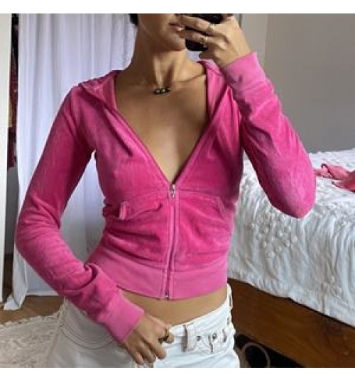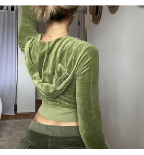 customized Casual Velvet Crop Top Winter Jacket Women Green Pink Zip Up Hoodies Coats Ladies Fashion Skinny Overcoat Streetwear
