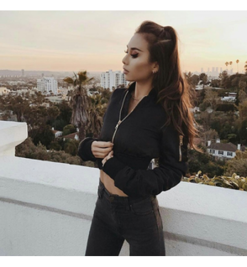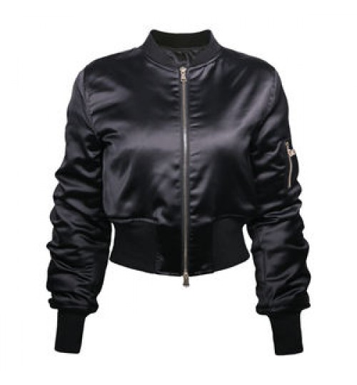 Autumn and Spring European and American street bomber jacket women's high-waist jacket wholesale