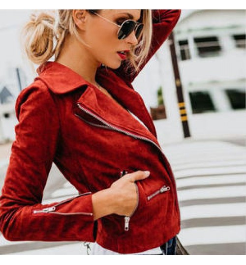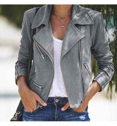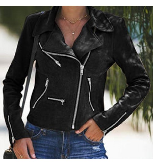 Autumn and winter new style European and American women's lapel diagonal multiple zippers short long sleeve commuter slim jacket
