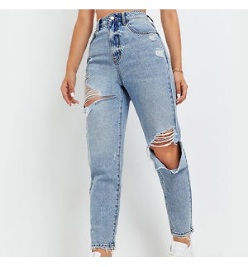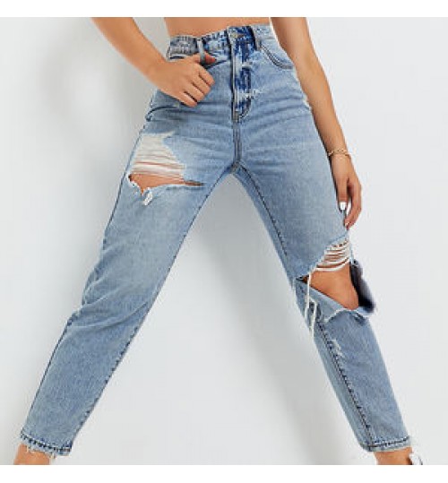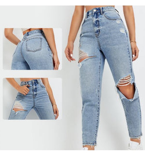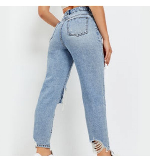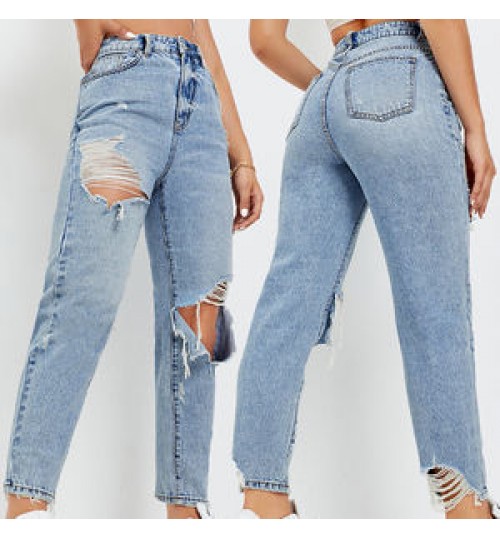 • New Fashion Women Demin Distressed Jeans Flare Ripped Blue Straight Leg High Rise Ripped Mom Jeans High Waist Women Jeans 2022