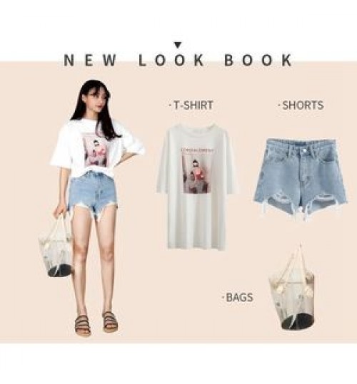 Women's denim shorts 2022 new high-waist shorts women casual loose ladies fashion large size elastic waist wide-leg short jeans