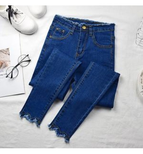 Spring and autumn new high waist jeans women's ninth denim pencil pants elastic pencil jeans