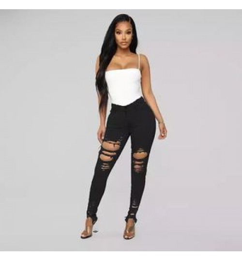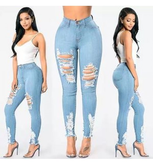 • Dark Blue Ladies Jeans Women Ripped Skinny Jeans High Waist Women's Pants Wholesale