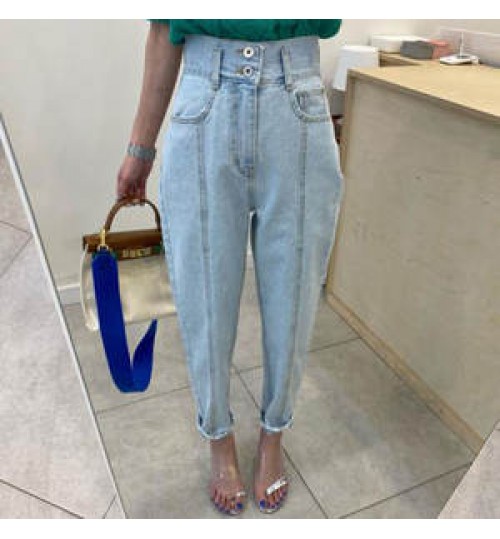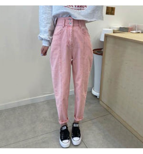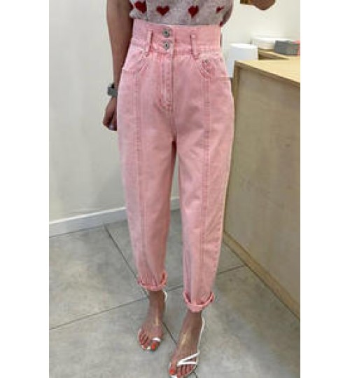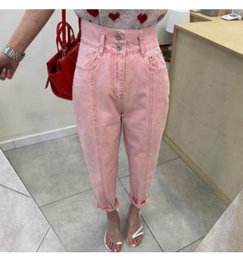 Wholesale 2022 Korean Chic Summer Sweet Cherry Blossom Powder High Waist Two Button Pockets Washed Women's Jeans