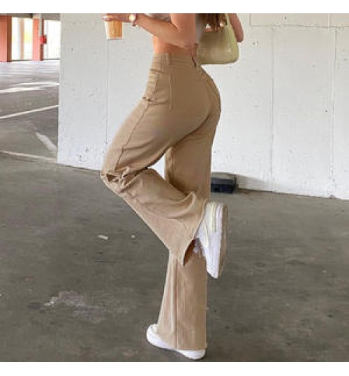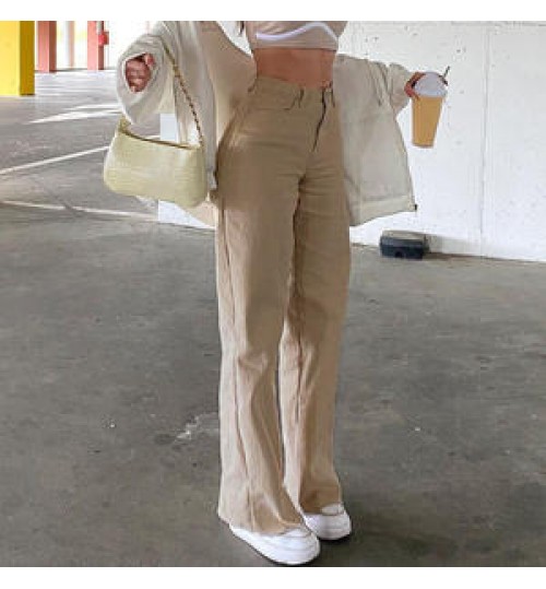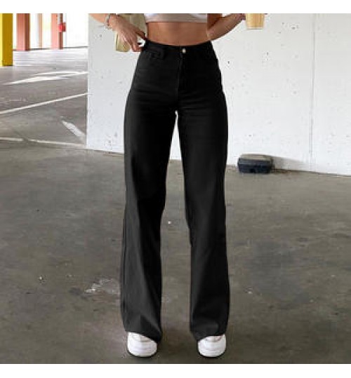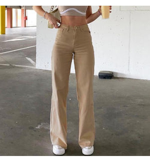 2022 new solid color jeans loose high waist straight pants women's casual trousers