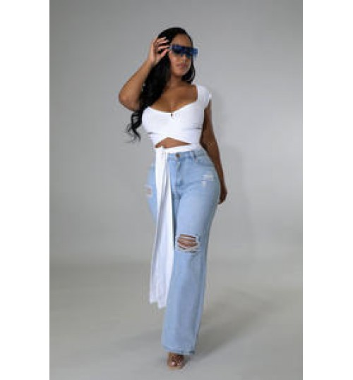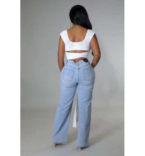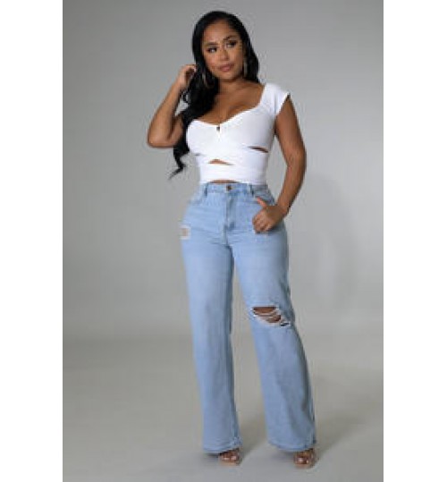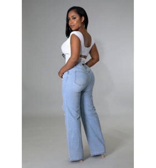 FS6730A New Arrivals Fashion Loose Light Blue Denim Pants Wide Leg Ripped Jeans For Women