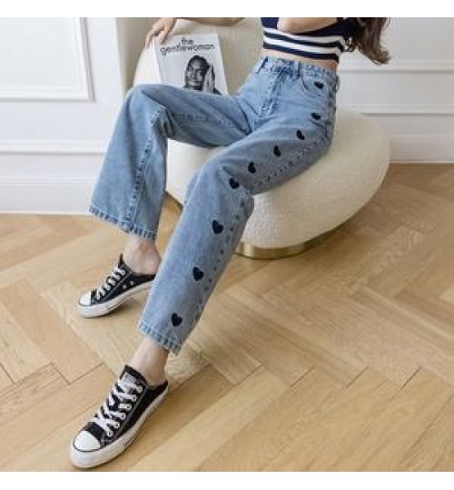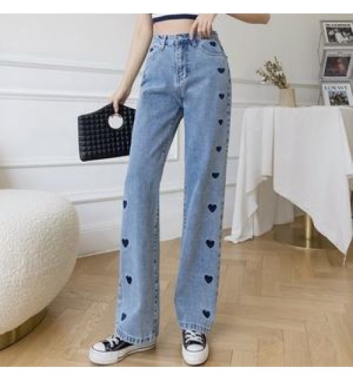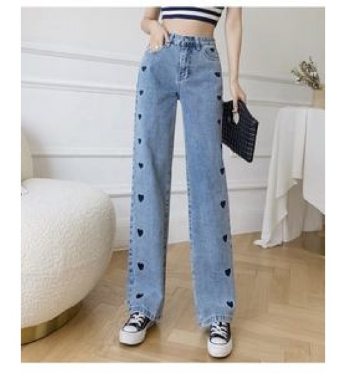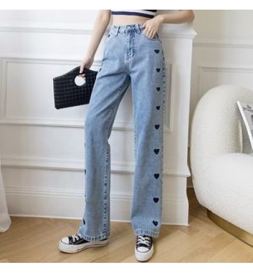 Product Name: | Jeans Women's 2021 New Embroidered Love Wide Leg Pants Thin High Waist Draping Loose Straight Mopping Pants |