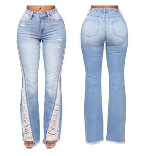 Wholesale Slim Fit Pants Slim Stretch High Waist Fringe Ladies Denim Jeans Femme Pants Skinny Ripped Women'S Jeans