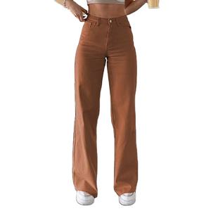 2022 new solid color jeans loose high waist straight pants women's casual trousers