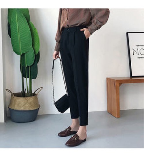 Women's Casual Harem Pants Spring Fashion Loose Ankle-length Trousers Office Lady Suit Pants