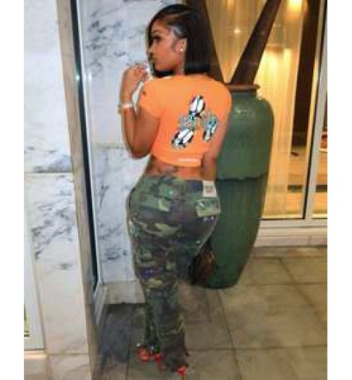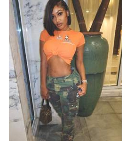 C1279 2022 new amazon top sells fashion spot print women plus size camouflage cargo pants