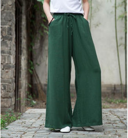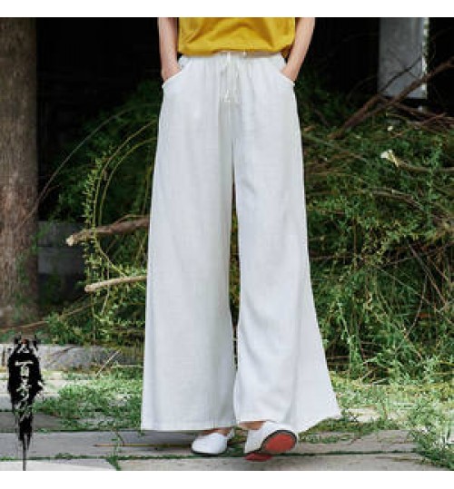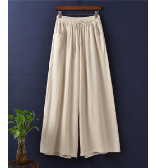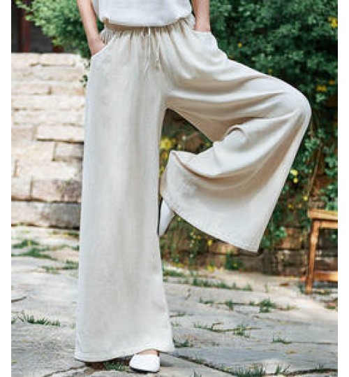 • Women Pants Pants Wide New Design Custom Logo High Quality Clothing Cotton Linen High Waist Solid Color Beige Trousers Women Wide Leg Pants