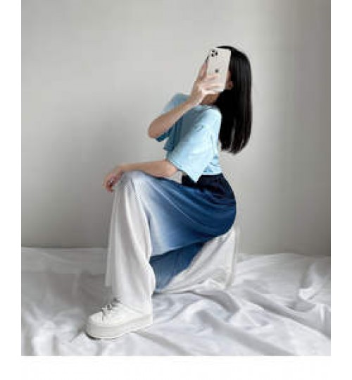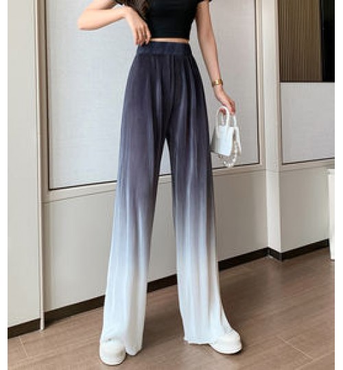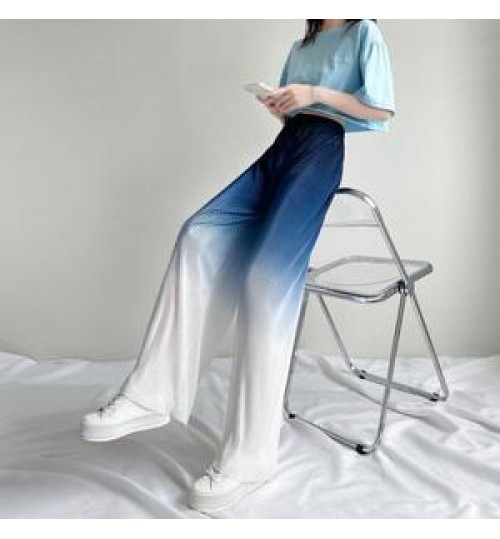 Customize Women's gradient colors viscose filament Black Blue Loose Flare Wide Leg Pants Trousers for Making Legs Look Long