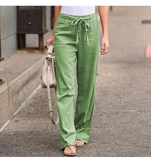 2022 summer wide leg trousers straight cotton linen fashion all-match blue casual pants women's clothing
