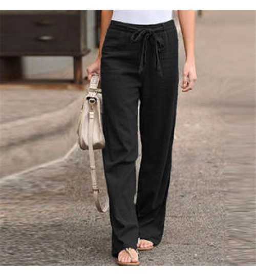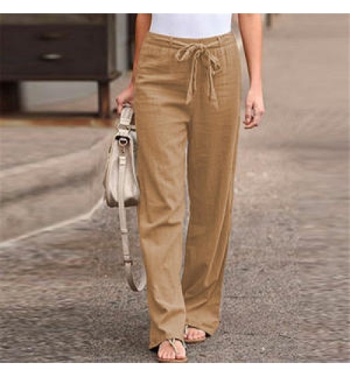 product name | 2022 summer wide leg trousers straight cotton linen fashion all-match blue casual pants women's clothing |