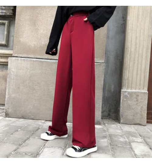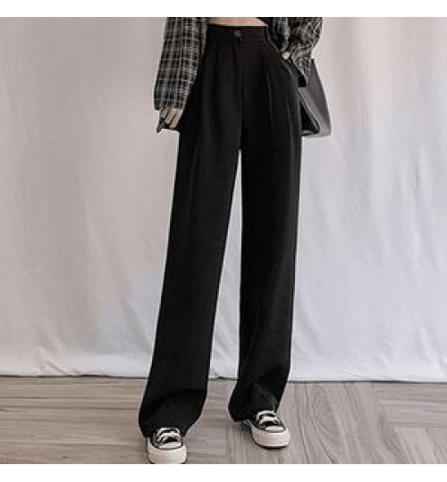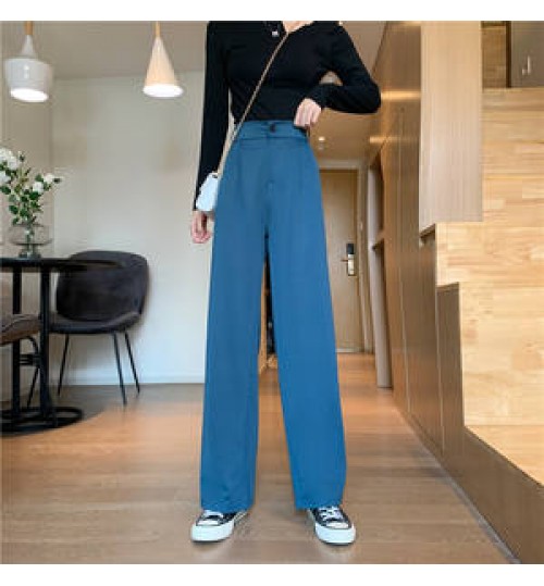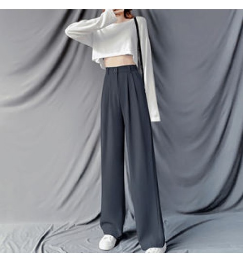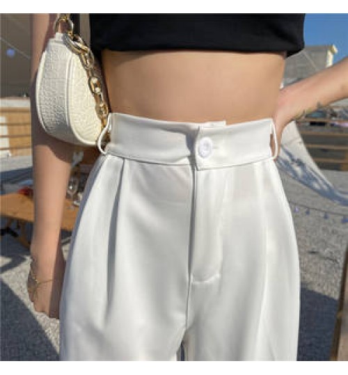Casual Chic Loose High Waist Female Wide Leg Pants Spring Summer Ladies One Button Long Trousers 2021 Women Solid Suit Pants