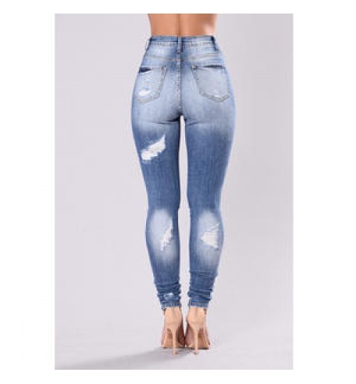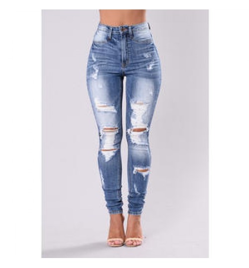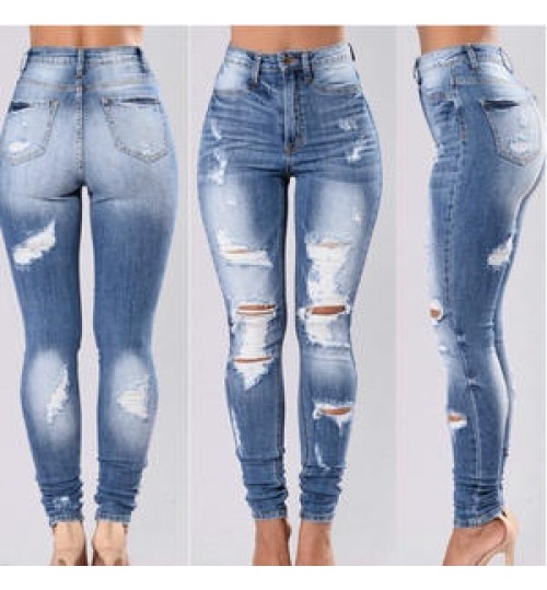 C8139 cut up high waisted distressed jeans women pants for ladies